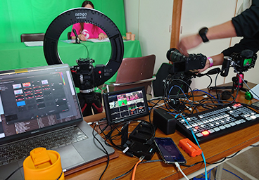 簡単な進行台本を作成、カメラ複数、スイッチャー、効果音・BGM、タイトルテロップでライブ配信 本番は4時間程度。